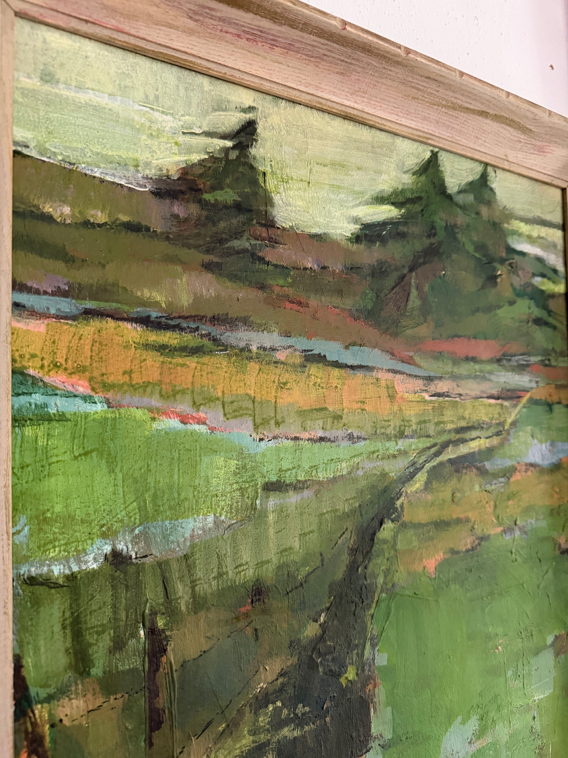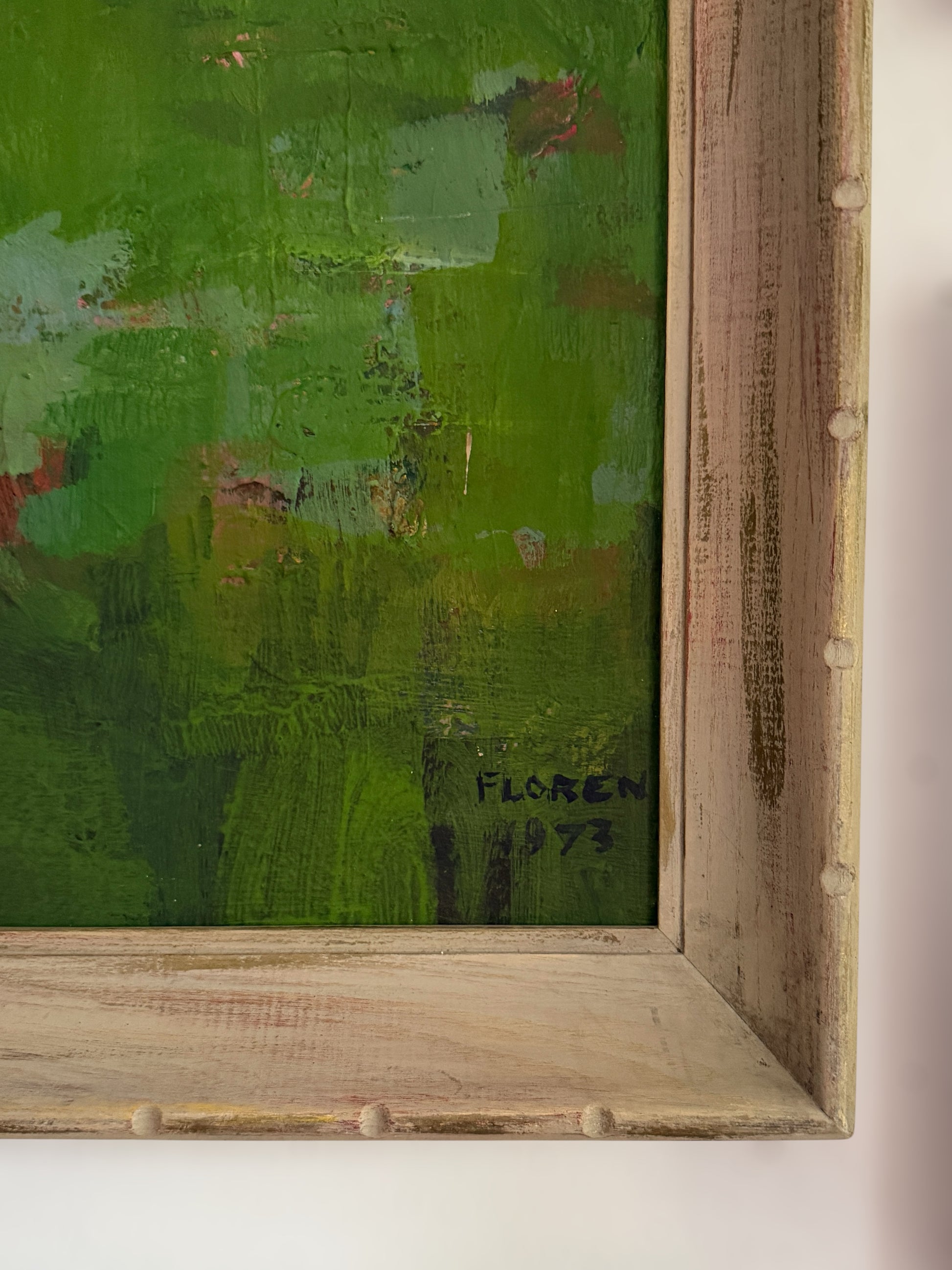 1973 Oil on Panel Landscape in Mid Century Frame by Oregon Artist J. Floren (1929-2017)