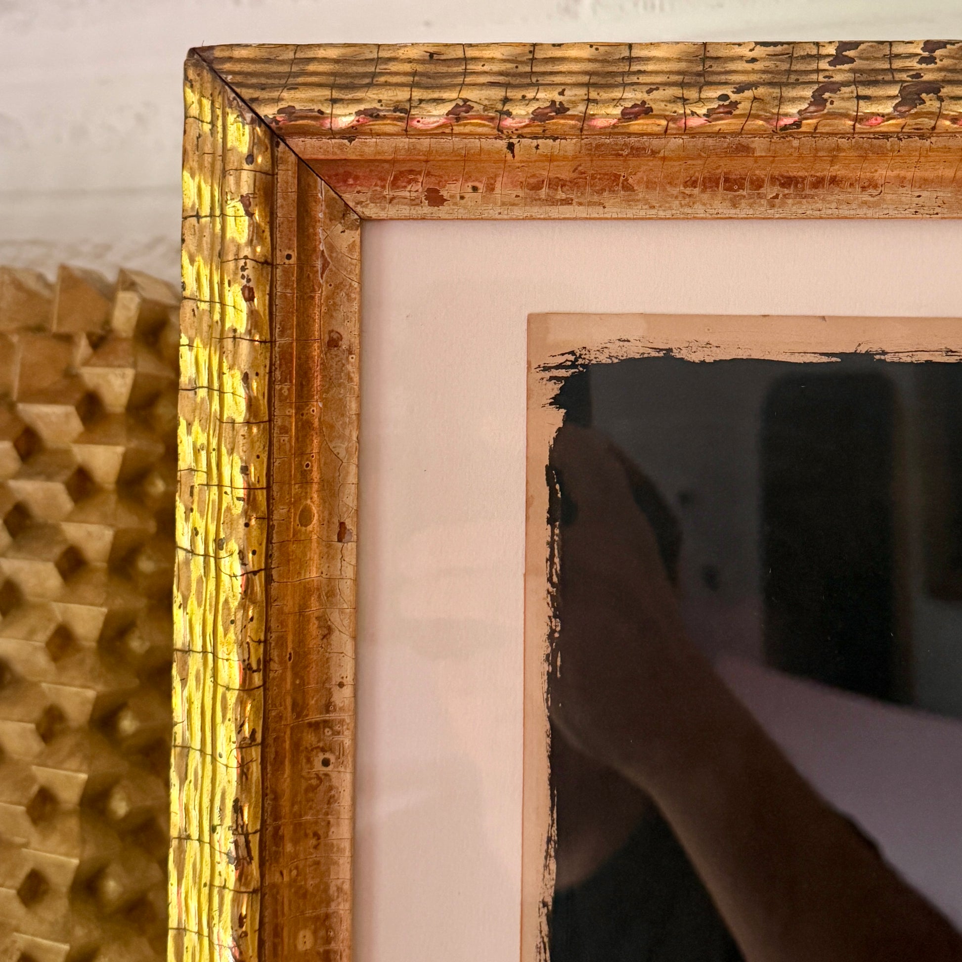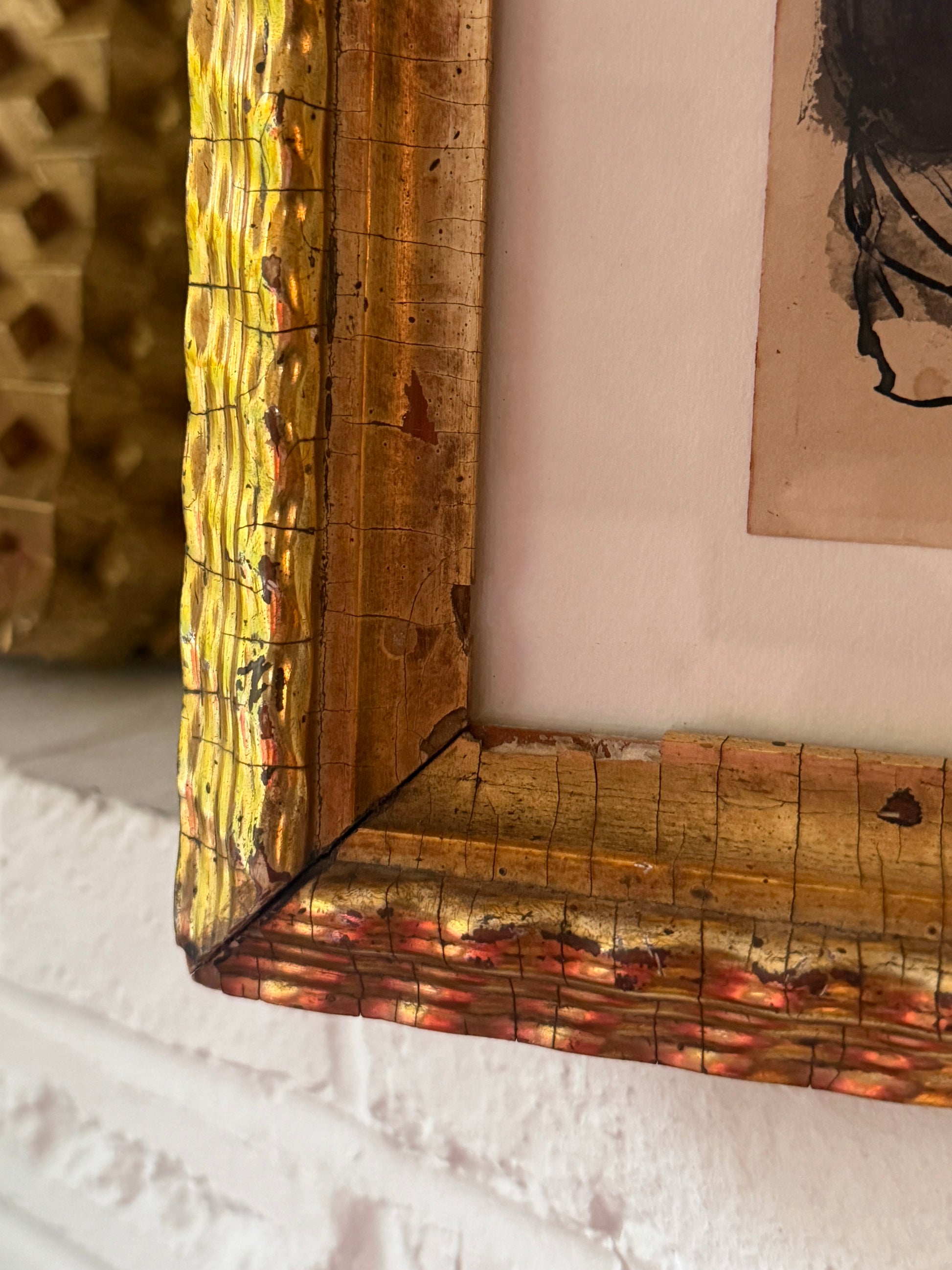 The frame is nearly 150 years old and is a true antique. It is stable however, there are areas of gilt loss, chipping, and a overall age-appropriate patina. Frame measures 22.5” x 20.5” and arrives ready to hang.