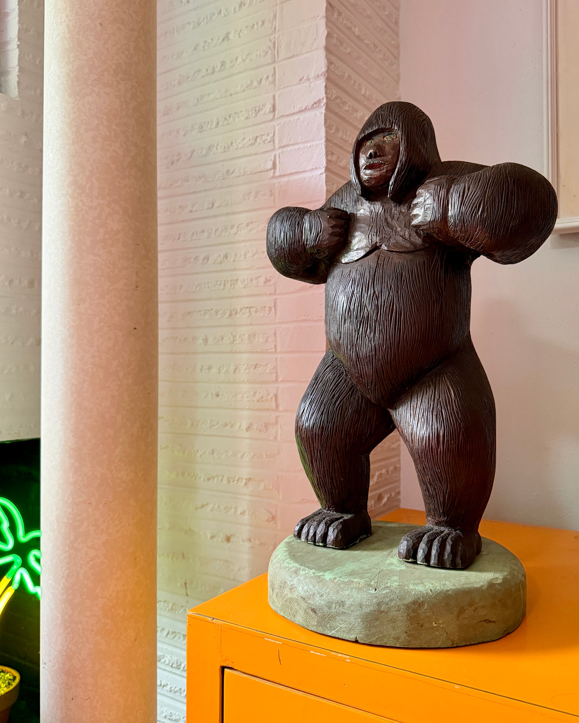 Large mid 20th century folk art gorilla carving