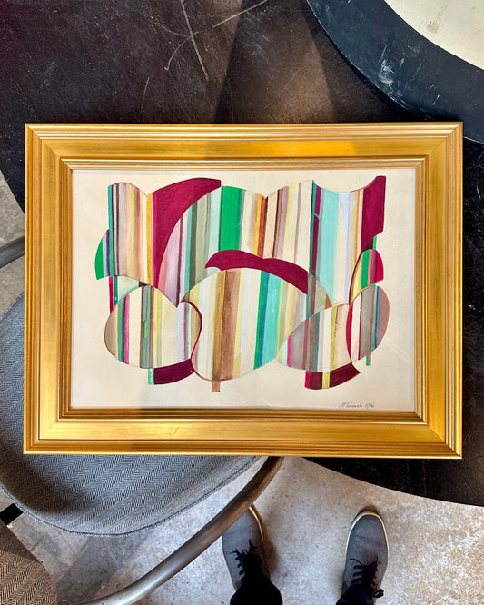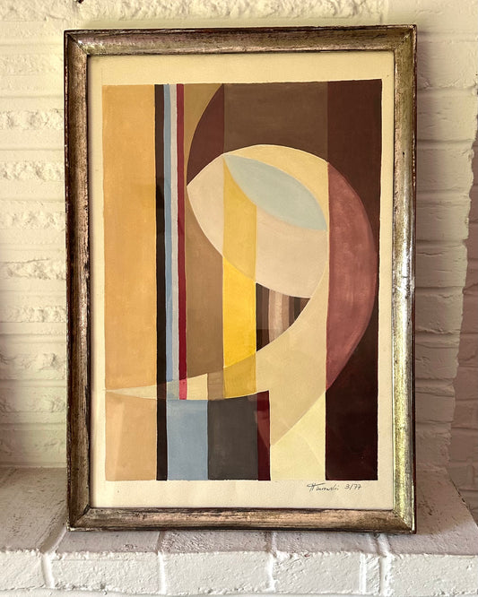 (ON HOLD) 1977 Abstract Watercolor, signed H. Turowski, 19th century silver gilt frame